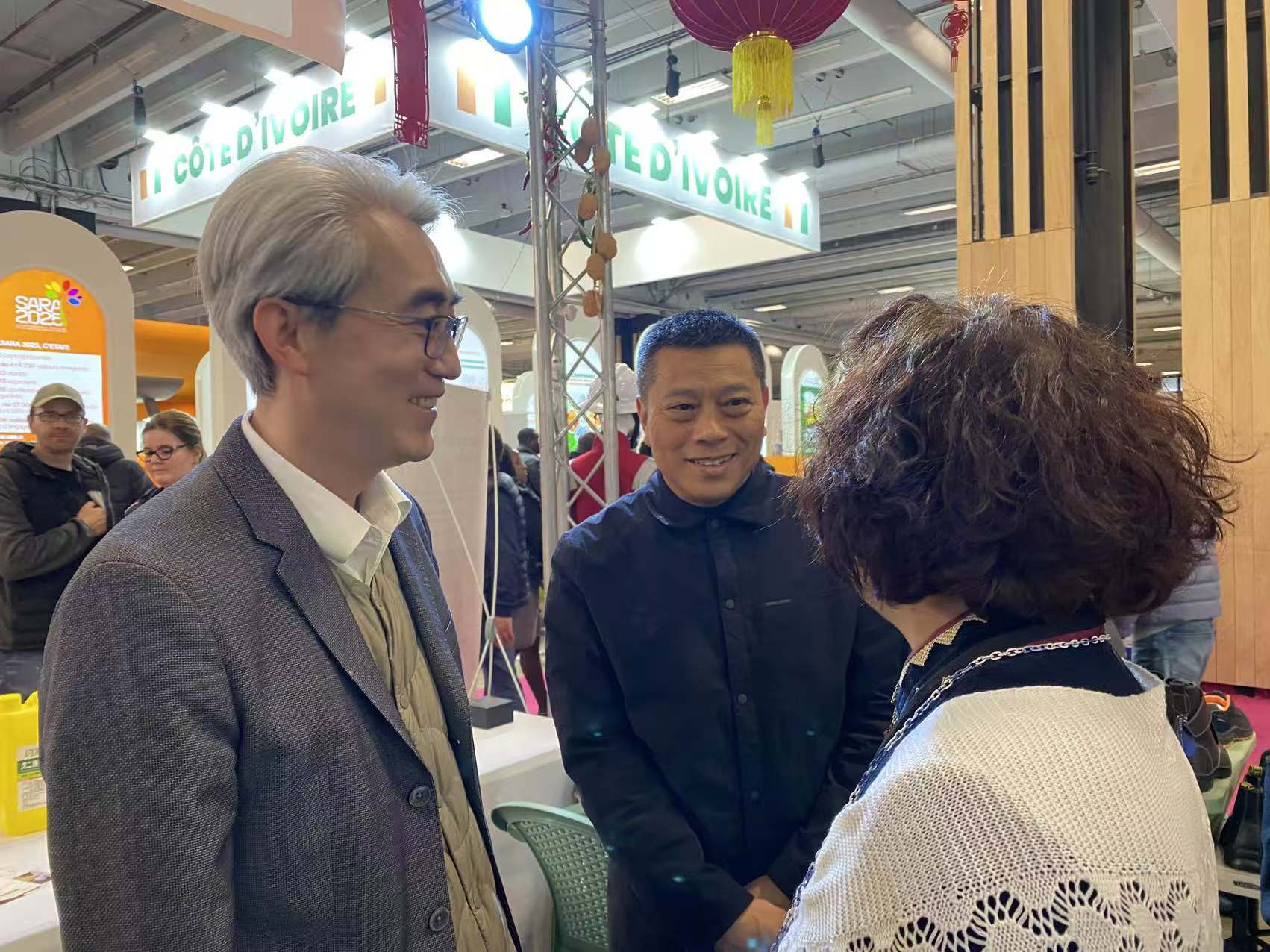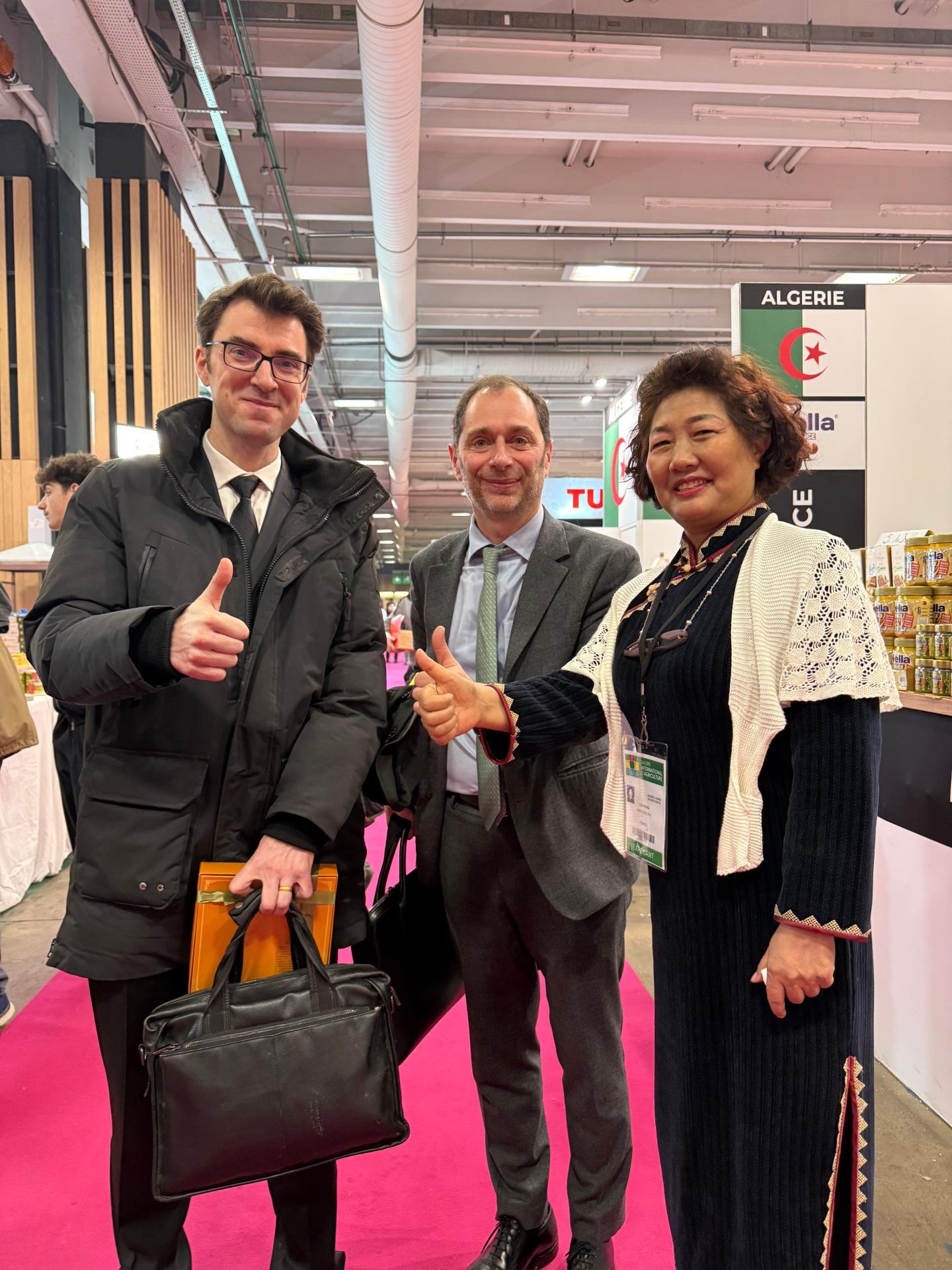 法国驻华大使馆农业参赞Cédric PRÉVOST(中)与Max MONOT(左)也来到现场拜访和支持中国参展企业