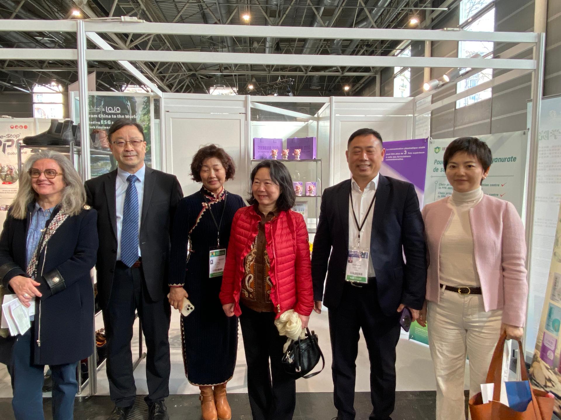 展会期间,中国驻法国大使馆科技公参郭晓林女士莅临SIA Pro展区巡馆指导,中国驻法国大使馆农业参赞陈国胜先生与中国驻法国大使馆科技处一秘李巧巧陪同。法国农渔业局欧洲与国际事务处国际行动管理支持专员Léonore Hugot女士和Élisabeth Descamps女士、SIA Pro展区主任等法方嘉宾陪同参观。中外嘉宾逐一走访中国展团展位,详细听取技术成果与产品应用介绍,对中国农业科技的创新性、实用性与国际化水平给予高度评价,认为中国方案精准契合全球农业绿色转型、高效生产、动物福利与职业健康的发展需求,为中法及全球农业合作注入新动能。