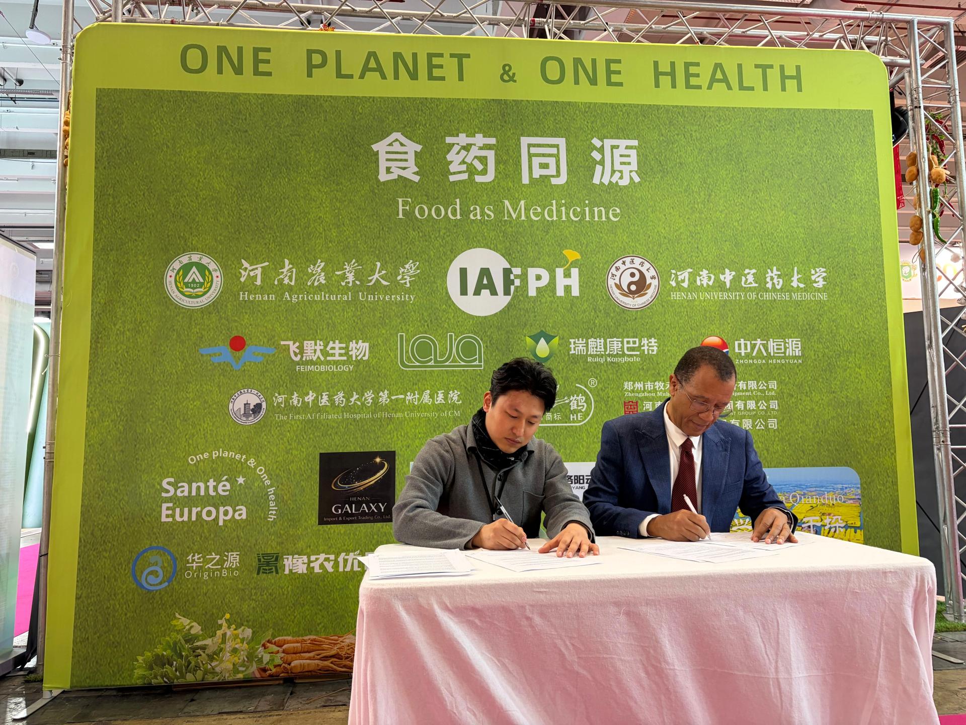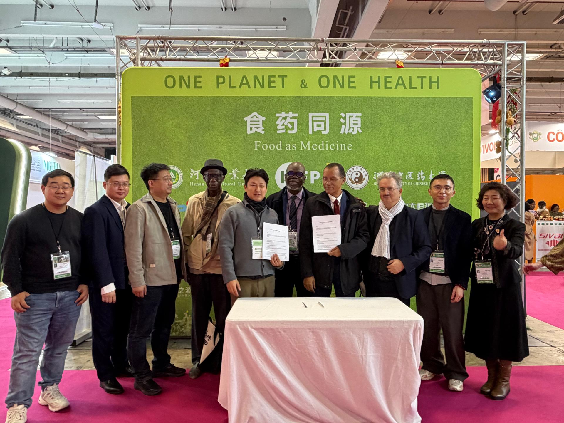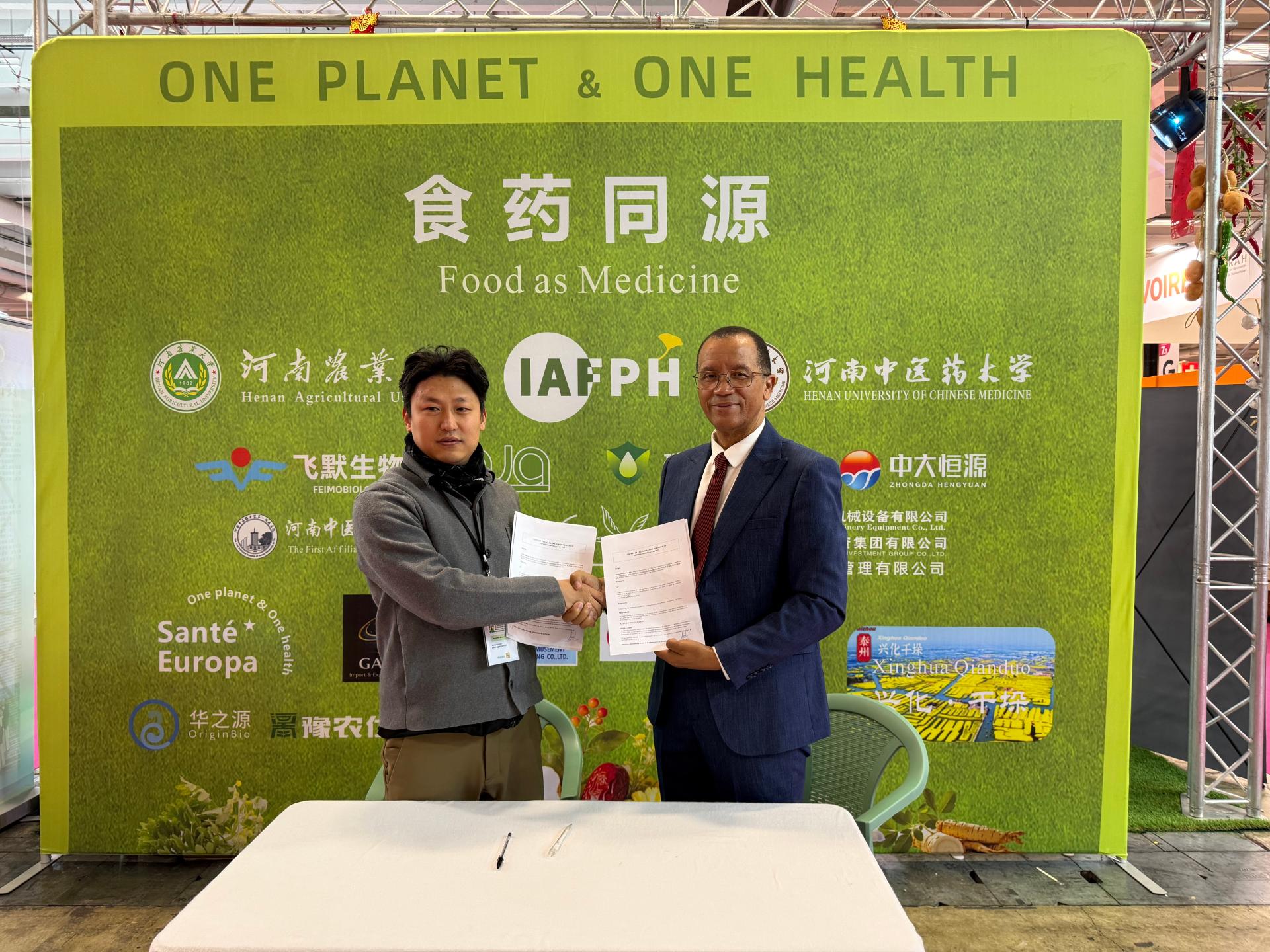 The agreement links the IAFPH headquarters in Paris, the Uni-CV in Africa, and Henan University of Chinese Medicine and Henan Agricultural University in China, establishing a "France-Africa-China" tripartite research synergy. It further delineates five specific research directions for collaborative scientific breakthroughs, demonstrating a highly systematic approach to cooperation: